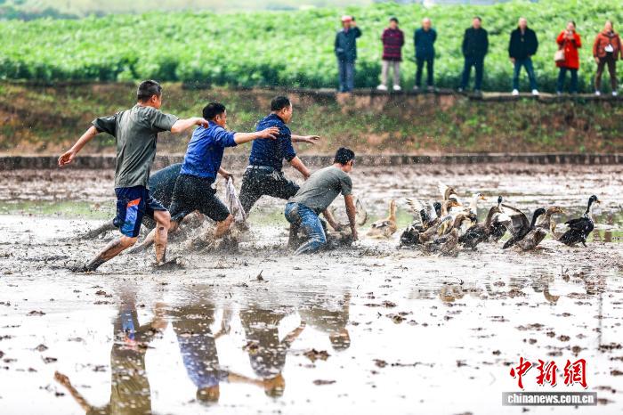 生机统统的捉鸭角逐。李贵仄 摄